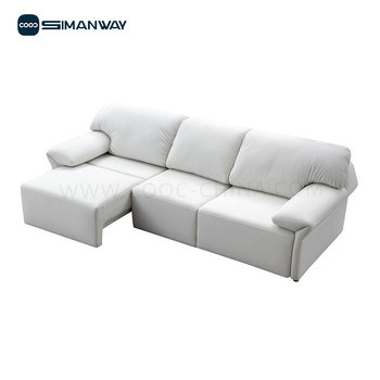 Juego de sofá deslizante en forma de L Modular de tela blanca moderna, sofá Seccional de función extensible eléctrico con reposacabezas ajustable